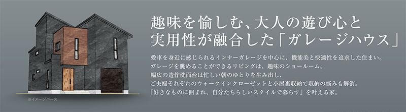 シアーズホームバースの注文住宅を現実的な広さでご覧いただける見学会を開催いたします。今回見学できる住宅は”趣味を愉しむ、大人の遊び心と実用性が融合した「ガレージハウス」”