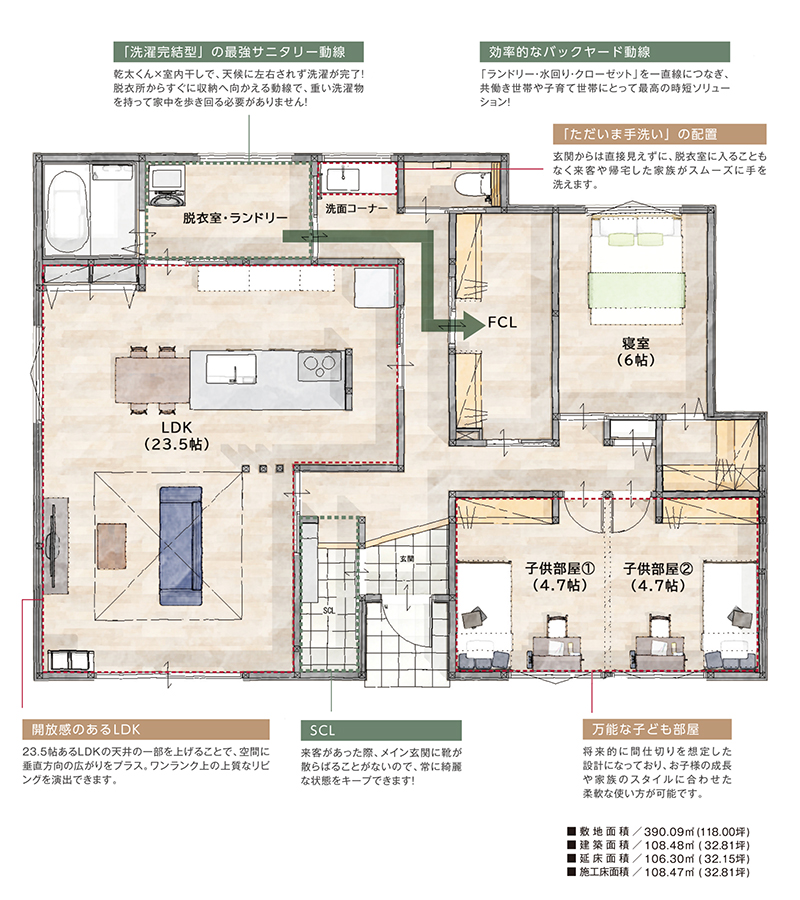 「家事動線、最短。幸福度、最大。」を叶える家です。