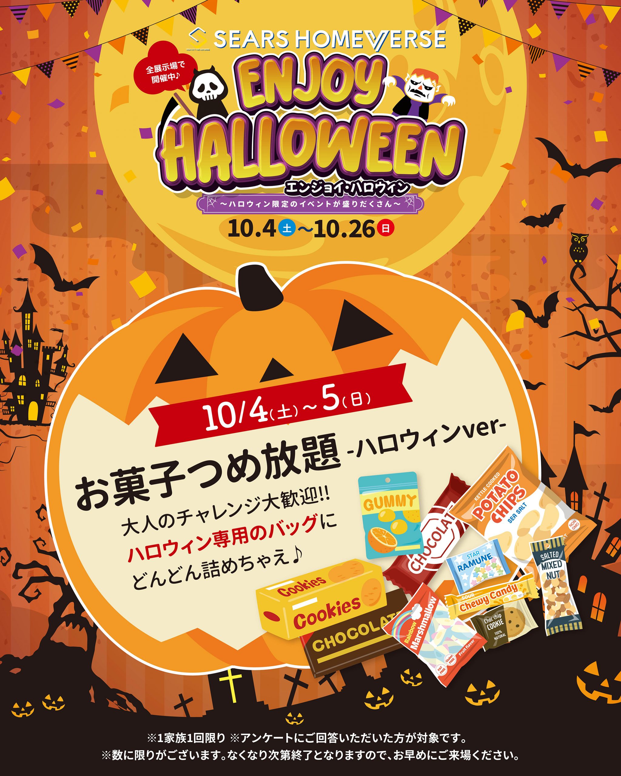 ・10月4日(土)〜5日(日)「お菓子つめ放題 -ハロウィンver-」・10月11日(土)〜13日(月祝)「ミニカー祭り」