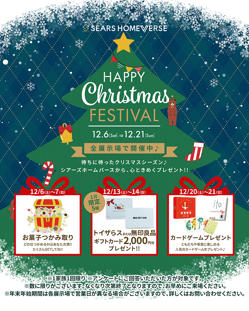 アマギフ最大3万円分進呈!【ハッピークリスマスフェスティバル】12月の全展示場開催 週末イベント!